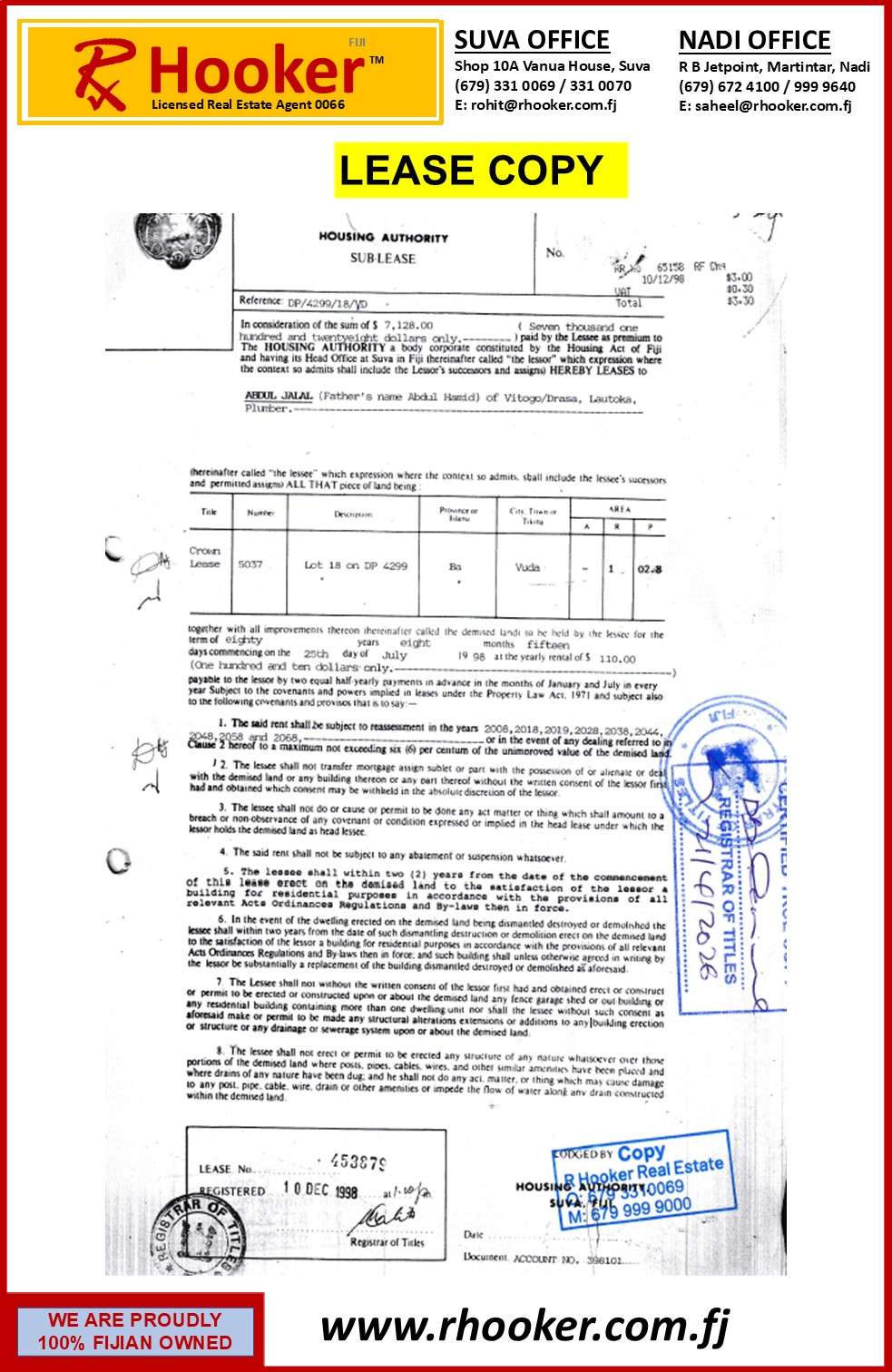 - Conveniently located just 2 minutes drive to Lautoka City and a minute drive to nearby hospitals and schools.