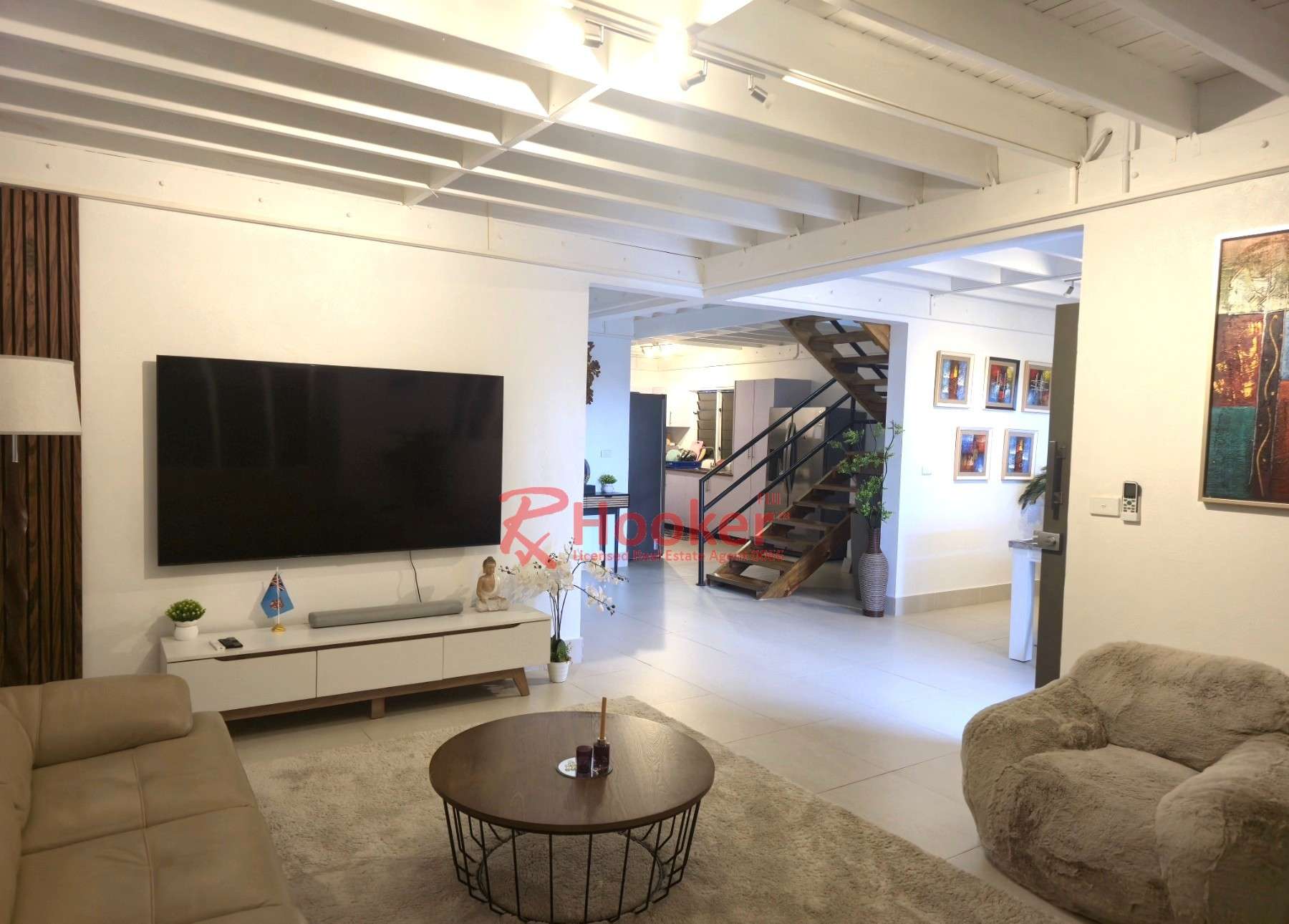 - Open plan living, dining and kitchen.